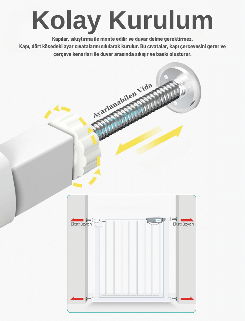 Önemli Uyarı: Çocuk güvenlik ürünleri, yardımcı güvenlik ürünleridir, çocukların bu ürünleri açabilme, bozabilme ihtimaline karşı ebeveynlerin çocukları üzerinde kontrolleri sürekli olmalıdır.
